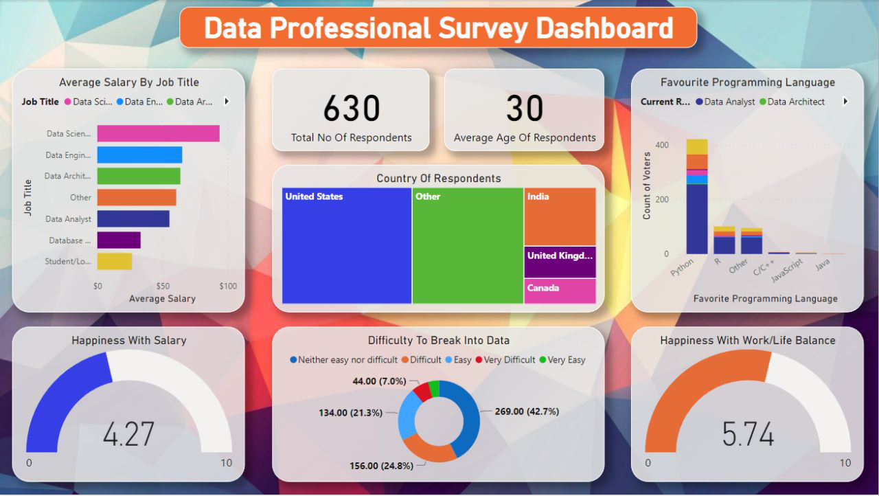 Performed data analysis on a dataset of data professional survey data using Excel and Power BI.